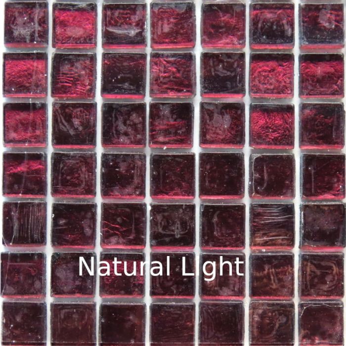This line is a reproduction based on Sicis Colibri but is much more affordable; the molded transparent glass has metallic foil heat-bonded to the back to produce a vivid, mirror-like reflective tile. As the colour of the glass is actually reflected, it is frost-proof and UVA-resistant; it may, however, experience some colour change or spotting in direct sunlight or when exposed to chlorine or salt. The tiles may be cut but care must be taken that the foil is not damaged behind during cutting. Each tile is 15mm² and 3.5mm thick. 1 sheet = 400 tiles (32.7×32.7cm); 9.4 sheets = 1m².