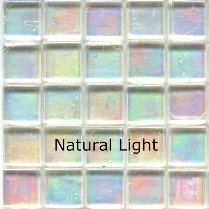 Almost fully transparent with a bewitchingly subtle iridescent finish, this series is almost identical to the Sicis Glimmer collection at a fraction of the cost. Fantastic for glass-on-glass work as well as on other surfaces. Due to their high degree of transparency, we recommend using a white glue and/or background. The tiles are mounted on film and cut easily using wheeled nippers. UVA- and frost-resistant, they are perfect both indoors and outside in large or small areas.
