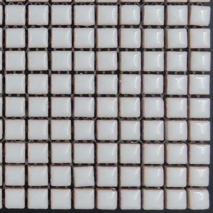 Hired-fired ceramic tile in versatile 10mm size. Each tile is 10x10x5mm with a high gloss glazed surface that is slightly domed (max. centre thickness of ±6mm). Traditional, durable, elegant and versatile, these tiles are mesh-mounted for installation on flat or curved surfaces as well as hobby projects both indoors and outdoors. UVA- and frost-resistant when used with suitable adhesive and grouts. Density and glaze making cutting difficult; best left whole.