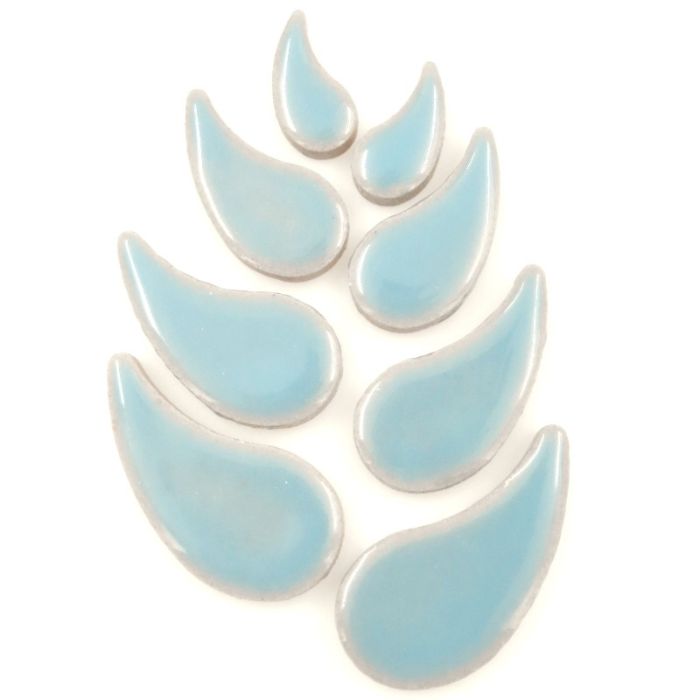 Our new Raindrops are a shape that is versatile as the curve comes both right and left facing in a mixture of 4 sizes making it more naturalistic and flowing than a straight edged tile. We have combined our 4 most popular sizes to give the most versatility and variety, 20mm, 30mm, 35mm and 40mm, these are proportionately wider to achieve balance and harmony. All sizes are of 5mm thickness . Together they can be combined to make flowers, ferns, trees or Art Deco borders. These are high fired and less likely to chip or break with daily use. 100g= +/-20 pieces 1000g= +/-200 pieces Please note this is just an indication due to the wide size variation this may vary widely