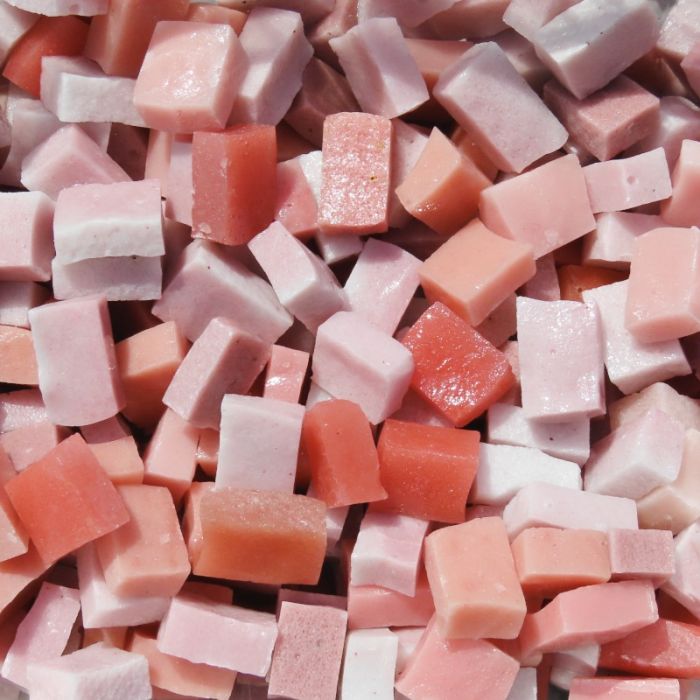 This smalti is made from a combination of recycled and natural oxides and is easy to cut using a wheeled nipper and can be applied in direct, indirect or double indirect methods. This product looks more like Antique Byzantine smalti than modern Venetian smalti. The colour tends to be more muted and the finish is more grainy with a slight translucency. The colour may show variegation through the matrix.