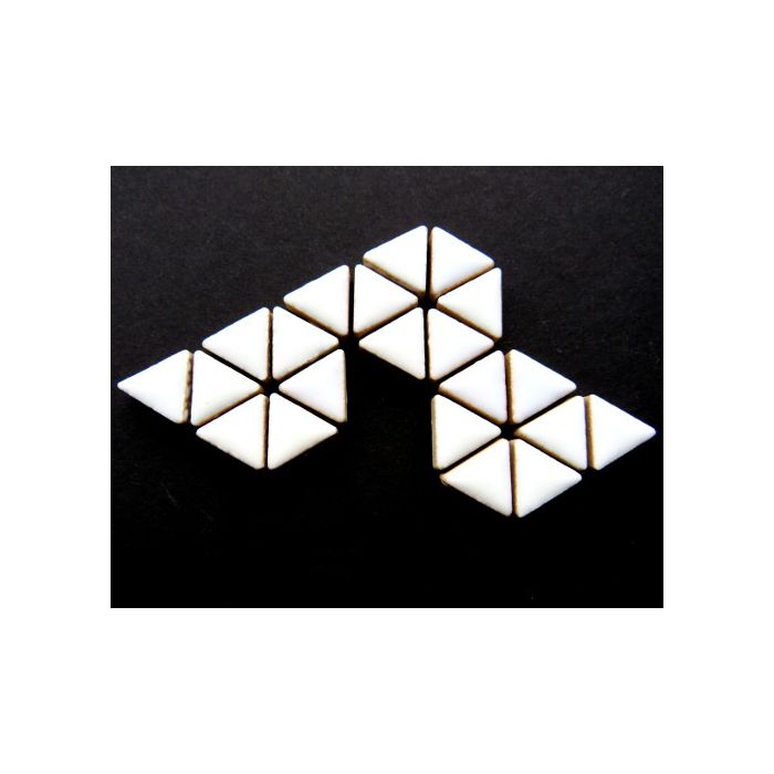 The perfect addition to our range of ceramic forms. These high gloss ceramic triangles are 15mm on each side and 5mm thick, giving maximum flexibility in combination with other ceramic tiles.