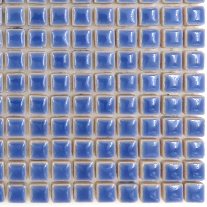 Hired-fired ceramic tile in versatile 10mm size. Each tile is 10x10x5mm with a high gloss glazed surface that is slightly domed (max. centre thickness of ±6mm). Traditional, durable, elegant and versatile, these tiles are mesh-mounted for installation on flat or curved surfaces as well as hobby projects both indoors and outdoors. UVA- and frost-resistant when used with suitable adhesive and grouts. Density and glaze making cutting difficult; best left whole.