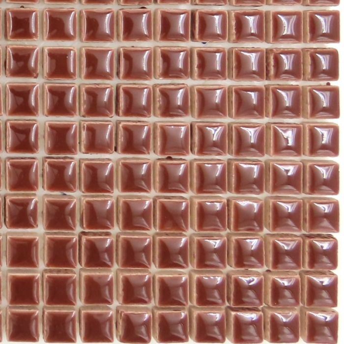 Hired-fired ceramic tile in versatile 10mm size. Each tile is 10x10x5mm with a high gloss glazed surface that is slightly domed (max. centre thickness of ±6mm). Traditional, durable, elegant and versatile, these tiles are mesh-mounted for installation on flat or curved surfaces as well as hobby projects both indoors and outdoors. UVA- and frost-resistant when used with suitable adhesive and grouts. Density and glaze making cutting difficult; best left whole.