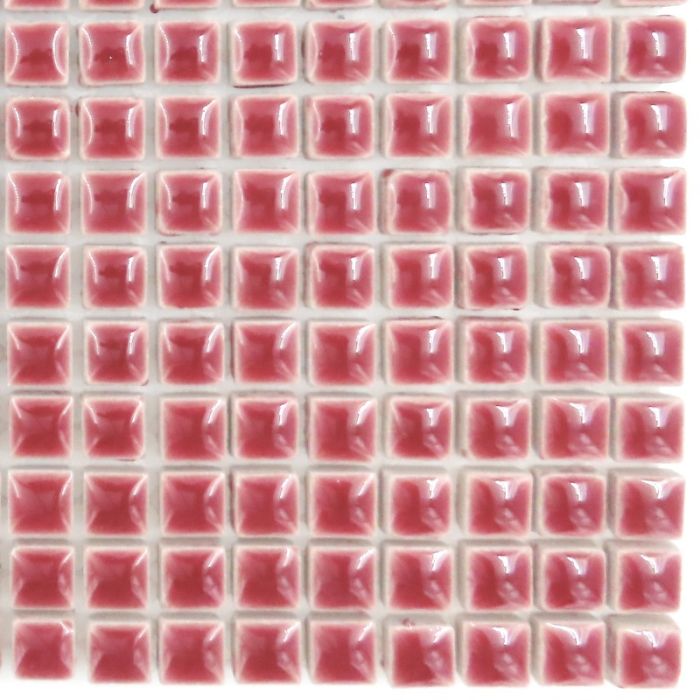 Hired-fired ceramic tile in versatile 10mm size. Each tile is 10x10x5mm with a high gloss glazed surface that is slightly domed (max. centre thickness of ±6mm). Traditional, durable, elegant and versatile, these tiles are mesh-mounted for installation on flat or curved surfaces as well as hobby projects both indoors and outdoors. UVA- and frost-resistant when used with suitable adhesive and grouts. Density and glaze making cutting difficult; best left whole.