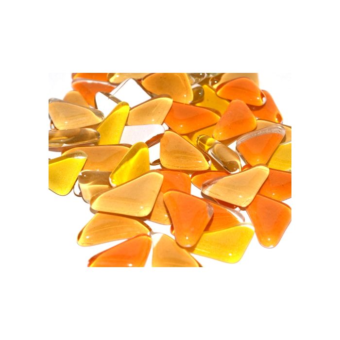 Multi-colour mix of irregularly shaped, molded glass tiles made from recycled float glass with a colour film bonded to the back. Smooth, rounded edges make them an excellent choice for children's projects (ages 3+ with appropriate supervision). No cutting required, but should you want to, wheeled nippers are the right tool. NOT UV-resistant. Suitable for indoor projects out of direct sunlight. Pieces vary in size from 10-25mm and are 3mm thick.