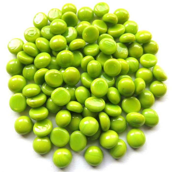 Opaque Mini Gems with a high-gloss finish. Made from recycled glass and coloured oxides using a linear kiln, these glass drops are semi-round and have a domed top and flat back. Each is approximately 10mm thick, with a diameter of 10-12mm. They are versatile in mosaics as well as general craft and decoration projects. Colour, shape, and size may vary from batch to batch, due to the artisanal manufacturing process. These gems are sold by weight and, because of the varying sizes, we cannot guarantee the quantity in each order.