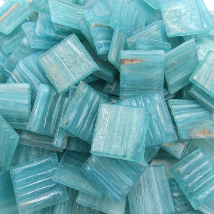 Goldlink is similar to our Studio and Vitreous collections with the addition of coppery highlights flowing throughout. Aventurine is added to the molten glass to add rich metallic highlights and the appearance of a semi-precious stone. Transparency varies from colour to colour and there is variation within a sheet, lending life and vivacity to mosaic installations. Well-suited to pools and spas, and easily combined with any 20mm tiles from our collection.