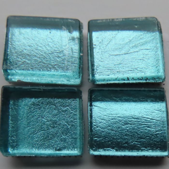 This line is a reproduction based on Sicis Colibri but is much more affordable; the molded transparent glass has metallic foil heat-bonded to the back to produce a vivid, mirror-like reflective tile. As the colour of the glass is actually reflected, it is frost-proof and UVA-resistant; it may, however, experience some colour change or spotting in direct sunlight or when exposed to chlorine or salt. The tiles may be cut but care must be taken that the foil is not damaged behind during cutting. Each tile is 15mm² and 3.5mm thick. 1 sheet = 400 tiles (32.7×32.7cm); 9.4 sheets = 1m².
