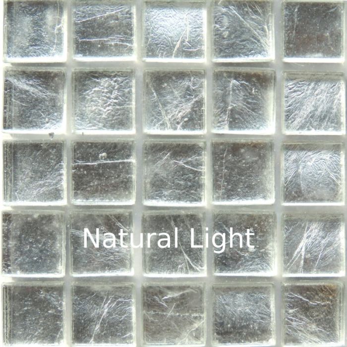 This line is a reproduction based on Sicis Colibri but is much more affordable; the molded transparent glass has metallic foil heat-bonded to the back to produce a vivid, mirror-like reflective tile. As the colour of the glass is actually reflected, it is frost-proof and UVA-resistant; it may, however, experience some colour change or spotting in direct sunlight or when exposed to chlorine or salt. The tiles may be cut but care must be taken that the foil is not damaged behind during cutting. Each tile is 15mm² and 3.5mm thick. 1 sheet = 400 tiles (32.7×32.7cm); 9.4 sheets = 1m².