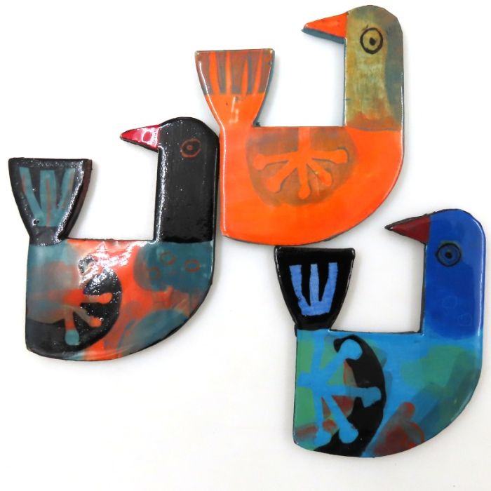Handmade high fired ceramic shapes by Anne Cardwell. These inclusions are called sectile and are added to mosaics as a complete figurative piece. The shapes and colours created by Anne are exceptionally well made. They are approx 4mm thick and made from stoneware. They combine well with matte back grounds such as Soft Stone, Porcelain by Winckelmans and Cinca and glass and ceramic with satin finishes.