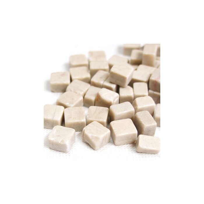 Machine cut and tumbled natural stone and marble cuboids. This size makes them wonderfully versatile without requiring cutting. They may be used in traditional Romanesque mosaics or given a modern twist by combining them with glass or ceramic tesserae. If you do want to cut them, consider using a hammer and hardie or a geared porcelain tile cutter. As stones vary in hardness, some are slightly softer and may become more rounded during tumbling. To bring out the full beauty and colour of this product, please seal with a stone or marble sealant. The 7mm thickness means they align perfectly with smalti when placed on their sides. Each is 10×10 mm and 7mm thick. 100g = ±70 pieces・1kg = ±700 pieces・1m² = ±14 kg