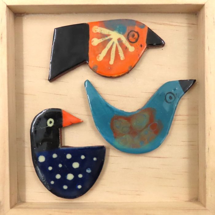 Handmade high fired ceramic shapes by Anne Cardwell. These inclusions are called sectile and are added to mosaics as a complete figurative piece. The shapes and colours created by Anne are exceptionally well made. They are approx 4mm thick and made from stoneware. They combine well with matte back grounds such as Soft Stone, Porcelain by Winckelmans and Cinca and glass and ceramic with satin finishes.