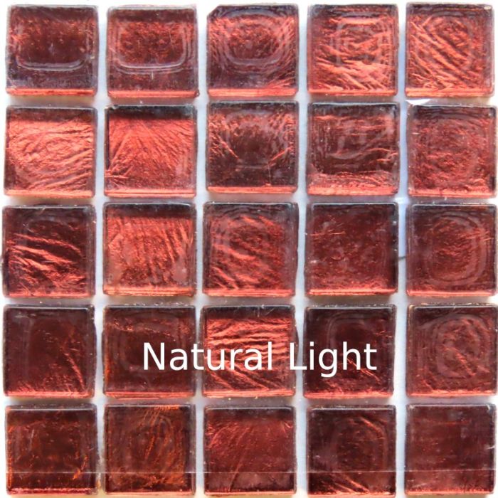This line is a reproduction based on Sicis Colibri but is much more affordable; the molded transparent glass has metallic foil heat-bonded to the back to produce a vivid, mirror-like reflective tile. As the colour of the glass is actually reflected, it is frost-proof and UVA-resistant; it may, however, experience some colour change or spotting in direct sunlight or when exposed to chlorine or salt. The tiles may be cut but care must be taken that the foil is not damaged behind during cutting. Each tile is 15mm² and 3.5mm thick. 1 sheet = 400 tiles (32.7×32.7cm); 9.4 sheets = 1m².