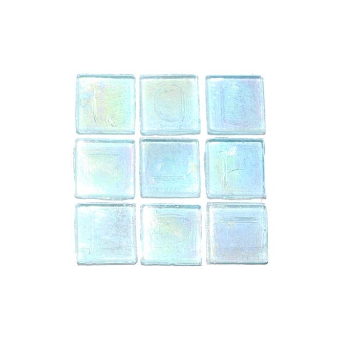 Almost fully transparent with a bewitchingly subtle iridescent finish, this series is almost identical to the Sicis Glimmer collection at a fraction of the cost. Fantastic for glass-on-glass work as well as on other surfaces. Due to their high degree of transparency, we recommend using a white glue and/or background. The tiles are mounted on film and cut easily using wheeled nippers. UVA- and frost-resistant, they are perfect both indoors and outside in large or small areas.