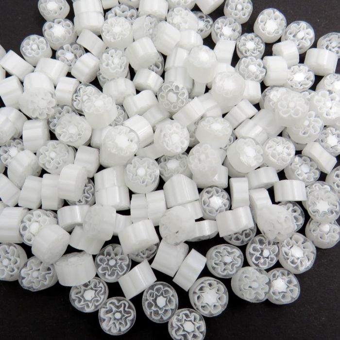 Handmade in Murano since the 15th century by the world renowned Effetre. The millefiori are compatible with Moretti glass for fusions (C.O.E. 104), but not with Uroburos or Borosilicate. Please note that size and colour may vary with each delivery.