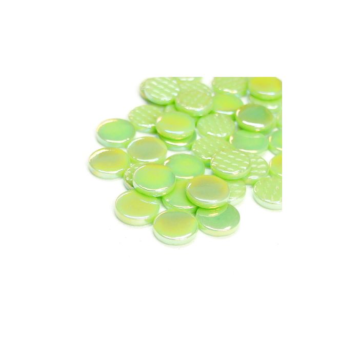 Opaque 18mm Penny Rounds in an iridescent finish. Sintered glass round tiles made from 100% recycled materials in rich colours that match our other Ottoman collections seamlessly. These glass coins have a diameter of 18mm and a 4mm thickness, making them ideal for combining with both 15mm and 20mm tiles. Wheeled nippers cut them beautifully, with little or no waste.