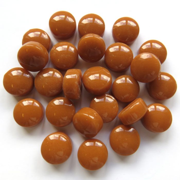 Opaque 12mm Optic Drops with a gloss finish. Each one is a perfect circle; uniform in size, shape, and finish. We do not recommend cutting as the rounded surfaces make it difficult to get a clean line. These sintered glass drops have a flat base and rounded centre, with a 12mm in diameter, 5-6mm thick edge, and an 8mm thick centre.
