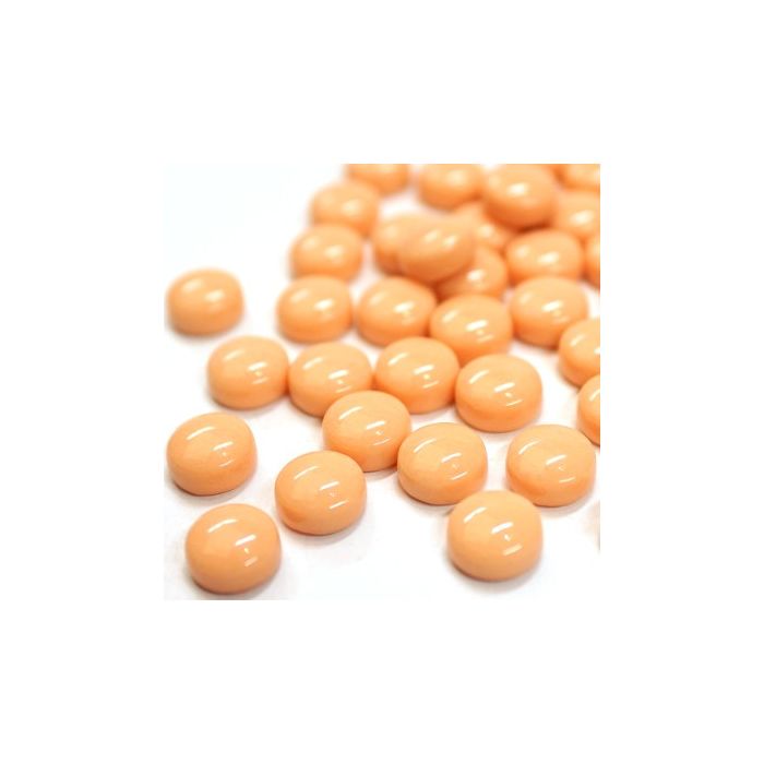 Opaque 12mm Optic Drops with a gloss finish. Each one is a perfect circle; uniform in size, shape, and finish. We do not recommend cutting as the rounded surfaces make it difficult to get a clean line. These sintered glass drops have a flat base and rounded centre, with a 12mm in diameter, 5-6mm thick edge, and an 8mm thick centre.