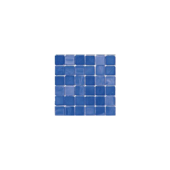 324 opaque glass tiles with an iridescent layer on a mesh sheet of 30x30cm; each tile is 15x15x4mm. 11.1 sheets = 1m². Each sheet weighs approx 700g. UVA- and frost-resistant. Cuts very easily and cleanly using double wheeled cutters.