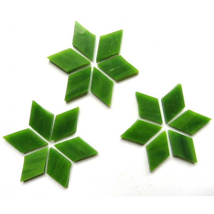 Diamonds cut from Tiffany stained glass, measuring 24×15×3 mm. Due to the artisanal manufacturing process, actual items may not perfectly match the photos. Please remember that stained glass is more fragile than vitreous or sintered mosaic. 25g = ±20 pieces・250g = ±200 pieces