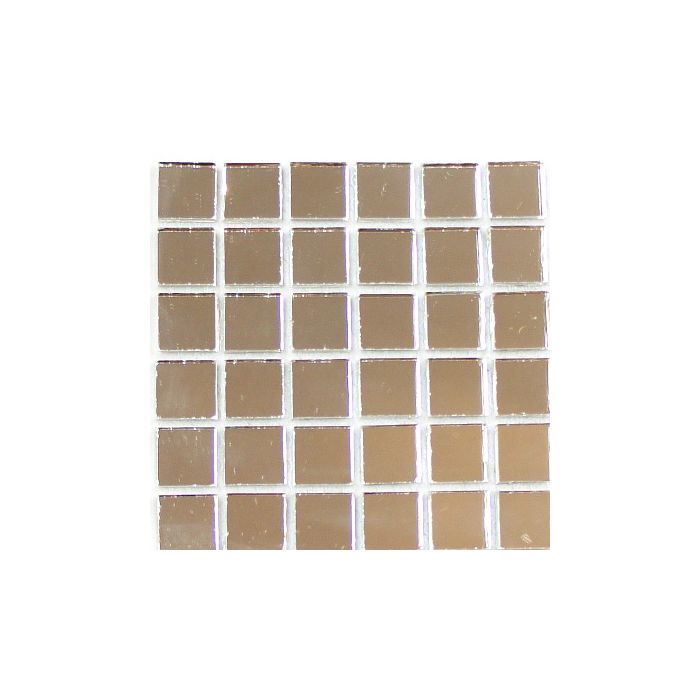 400 tiles on on mesh, each tile is 15x15x4mm so easy to combine with Mosa and other ceramic wall tiles. Each sheet 33 X 33 cm. 9.4 sheets = 1M2. Mercury coated grade A glass mirror. UVA and frost resistant. cannot be used with cementitious glues or silicons.