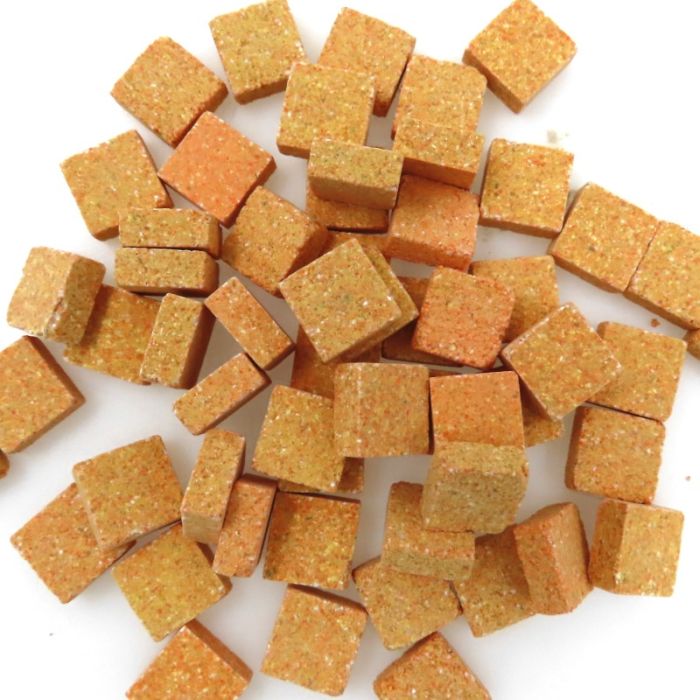 Made from cement powder combined ground dolomite and coloured with mineral oxides. This mixture is pressed at high pressure in a mould to form individual tiles that be cut with scissors or regular tile nippers and therefore perfect for children. Please note that using scissors gives a rougher more inaccurate cut. We carry 3 sizes 5mm and 20mm squares and 10x20mm rectangles. All tiles are approximately 4mm thick These tiles are not suitable for outdoor use unless properly protected from humidity during frost season and some fading may occur with UV exposure particularly colours (023, 024, 025, 026, 027). They look like traditional stones used in Byzantine and Roman mosaics but without the difficulty of working with natural stone. These tiles are porous and can be sealed using a stone sealer or diluted pVa. 5mm is packaged in 10g (+/-50 tiles) and 200g (+/-1000 tiles) 10mm is packaged in 50g (+/-53 tiles) and 1000g (+/-1050 tiles) 10x20mm is packaged in 50g (+/-21 tiles) and 1000g (+/-420 tiles)