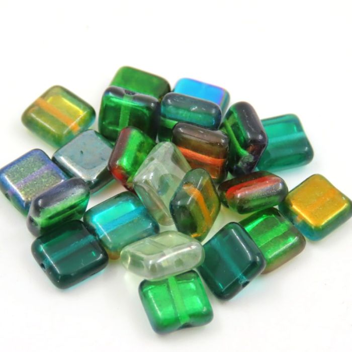 Pressed Czech Cystal in cuboid form of 8mm. Double fired and acid etched for a durable iridescent finish. Weather and UV resistant. 10G=22PCS