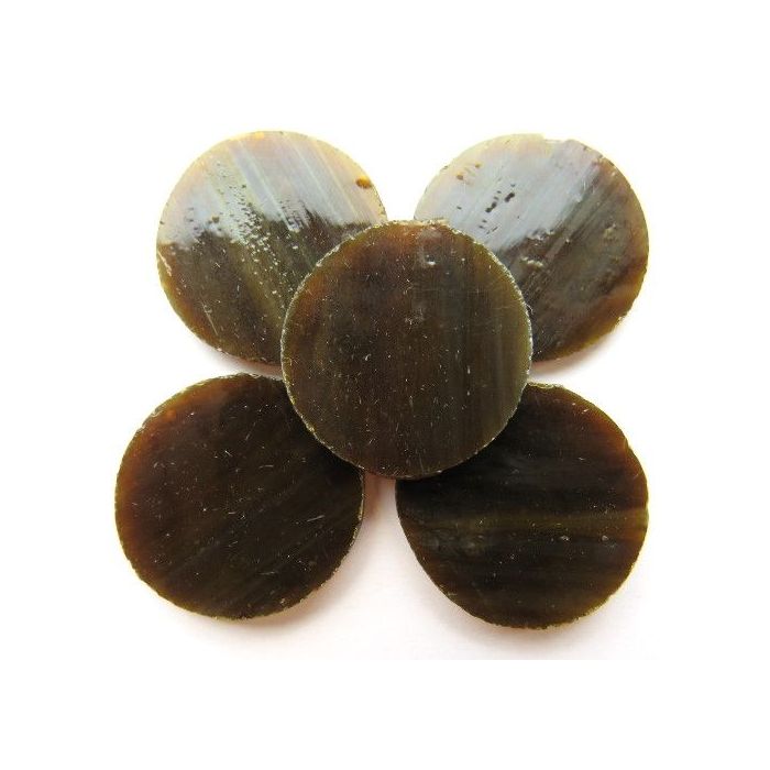 Hand-cut circles made from Tiffany stained glass in 25mm diameter. The thickness is 3mm and combines easily with all standard stained glass and mirror. As these are individually cut and shaped there will be variations in size and shape and as they are cut from sheets of stained glass which are blends and tones of varying depths each circle might vary within a range of colours. Please note that the actual items may not perfectly match the photos. As stained glass is thinner, please remember that it might be more fragile than vitreous or sintered mosaic tile.