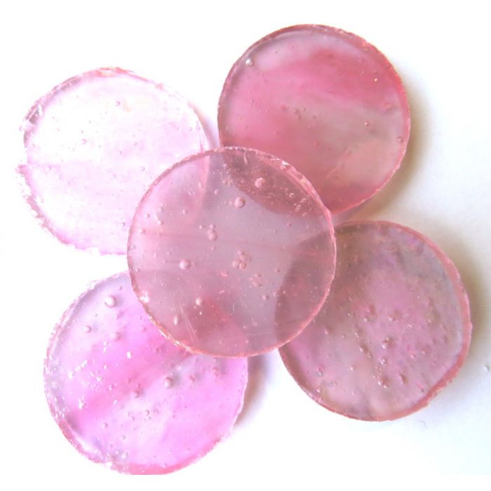 Hand-cut circles made from Tiffany stained glass in 25mm diameter. The thickness is 3mm and combines easily with all standard stained glass and mirror. As these are individually cut and shaped there will be variations in size and shape and as they are cut from sheets of stained glass which are blends and tones of varying depths each circle might vary within a range of colours. Please note that the actual items may not perfectly match the photos. As stained glass is thinner, please remember that it might be more fragile than vitreous or sintered mosaic tile. 100g=+/-30pieces