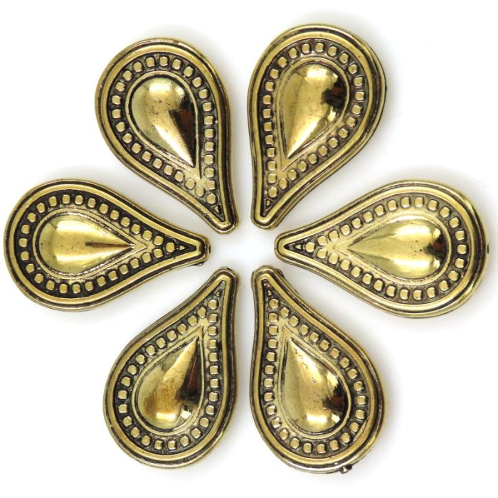 Machine cast acylic with silver tone electrocoating, attractive teardrop shape with Tibetan bead detailing.