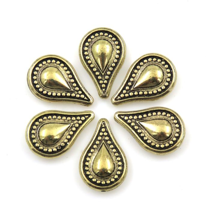 Machine cast acrylic with silver tone electrocoating, attractive teardrop shape with Tibetan bead detailing.